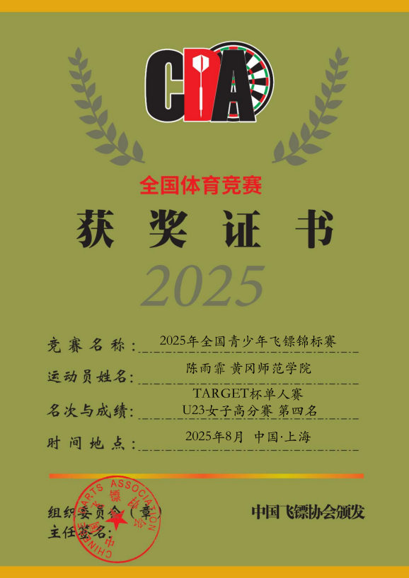 本网讯 8月15日,2025年全国青少年飞镖锦标赛在上海星扬西岸中心圆满落幕。我校参赛选手代表湖北省参加了U23组个人赛、团体赛及省际团体锦标赛,获U23女子团体冠军、女子个人赛第四名及省际团体锦标赛男子亚军、女子第四名的优异成绩。
